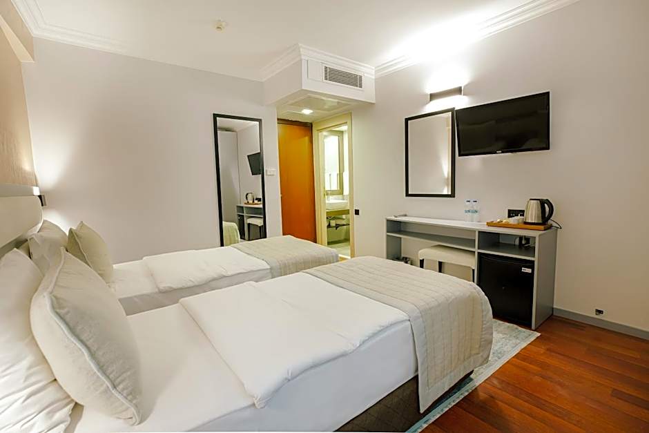 Featuring free toiletries, this triple room includes a private bathroom with a shower, a hairdryer and slippers. The air-conditioned triple room features a flat-screen TV with satellite channels, a mini-bar, a tea and coffee maker, a wardrobe as well as city views. The unit has 3 beds.
